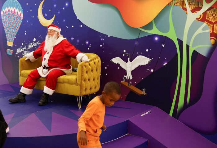Фотосессия с Сантой в торговом центре Sandton в Йоханнесбурге, Южная Африка. (Фото Siphiwe Sibeko):