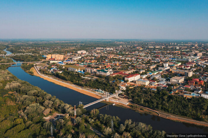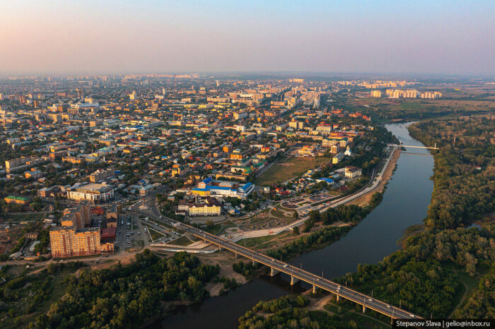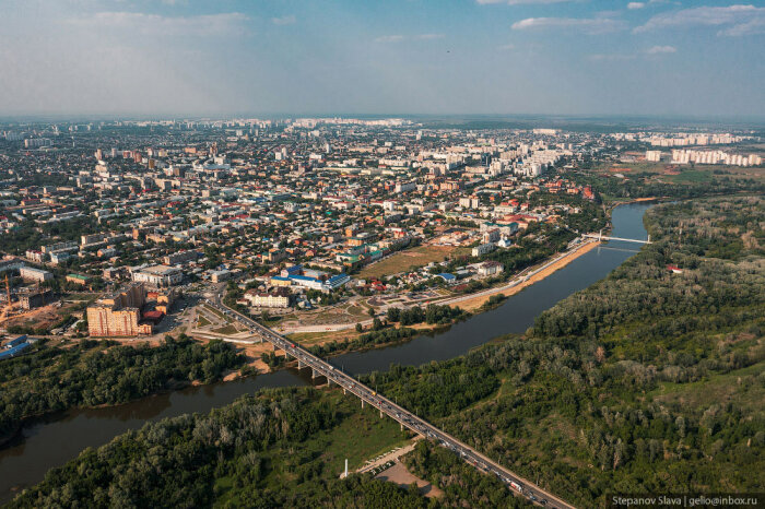 С высоты птичьего полета, Оренбург предстает как город, расположенный на стыке Европы и Азии