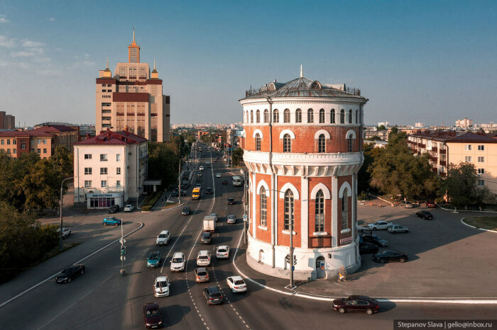 Сооружение напоминает готический замок и считается архитектурной достопримечательностью Оренбурга. Башню построили в 1929 году из красного и белого камня. Раньше внутри был огромный бак, который поддерживал напор воды в городском водопроводе. Более 20 лет башню использовали по назначению, но затем водопровод модернизировали и в здании провели реконструкцию. Долгое время внутри работали мастерские художников-оформителей. Сейчас первые этажи отдали под офисные помещения.