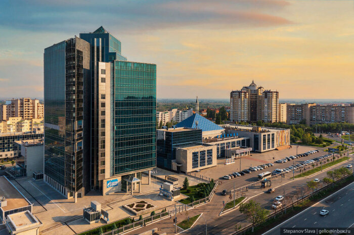 Здание Газпрома — второе по высоте в городе (78 метров). Офис построили в 2010 году. Дворец Культуры появился гораздо раньше — в 1983 году. Изначально он назывался «Дружба», «Газовиком» стал в 1991 году. ДК построили как подарок молодёжи из ВПО «Оренбурггазпром». Сейчас здесь проводят деловые мероприятия, выставки, концерты и праздники — в год более 450 мероприятий.