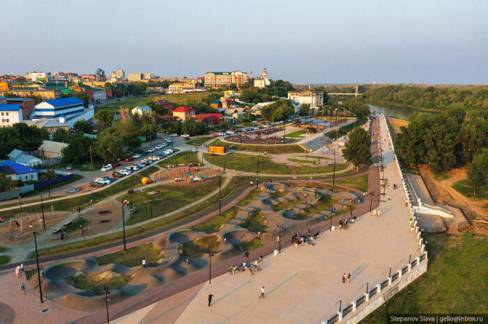 24. Памп-Трек в Оренбурге также появился в 2020 году. Это две асфальтированные спортивные трассы для тренировок по амплитудному пампингу. Длина трасс около 200 метров, на участках есть контруклоны и «кочки». Подходят для всех дисциплин велоспорта, катания на скейтбордах, самокатах и роликах.