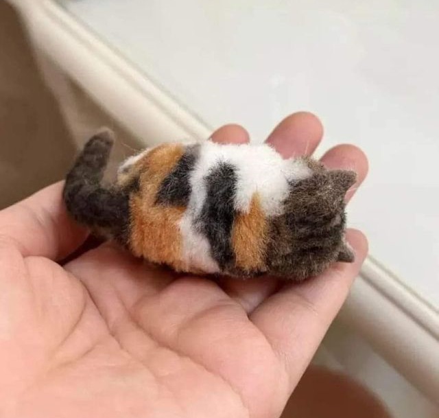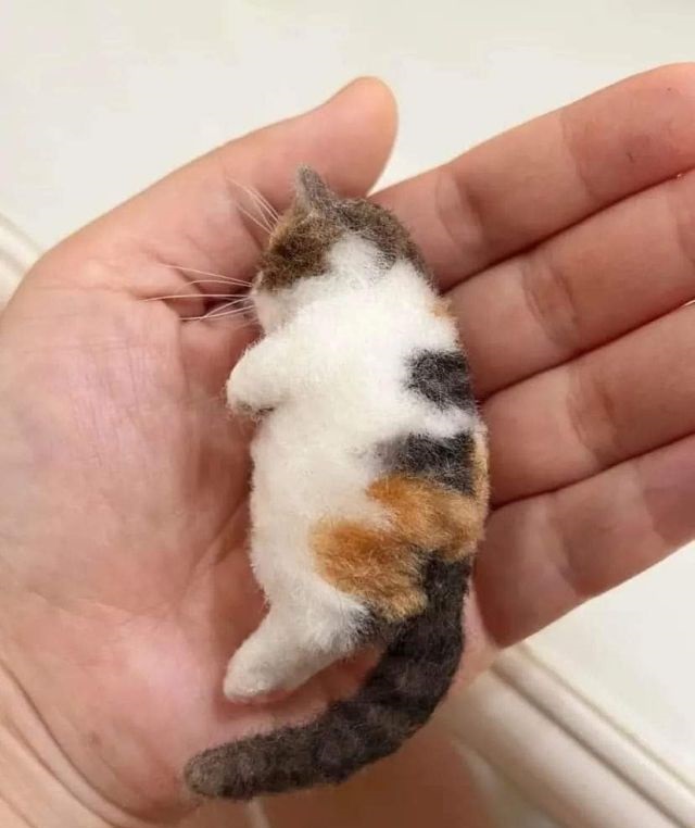 Мужчина аккуратно вычесал своего питомца-кота и из собранной шерсти волшебным образом создал его миниатюрную версию. Получившийся результат был настолько очаровательным, что даже оригинальный котик почувствовал себя немного нервным. Мастерство мужчины поражает воображение. Давайте взглянем на этого маленького микрокотика. Вот оригинал.