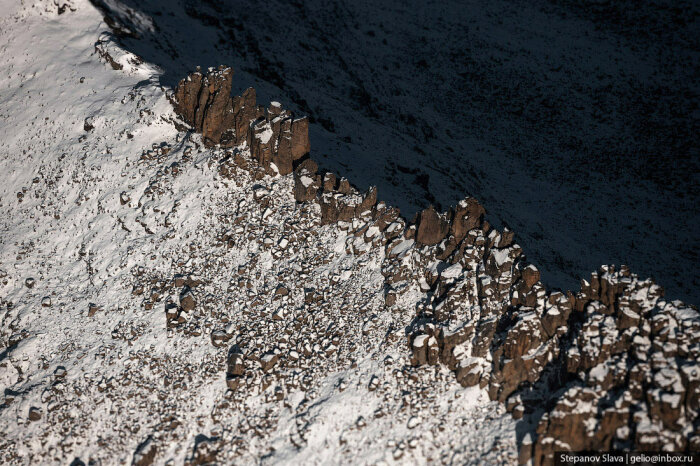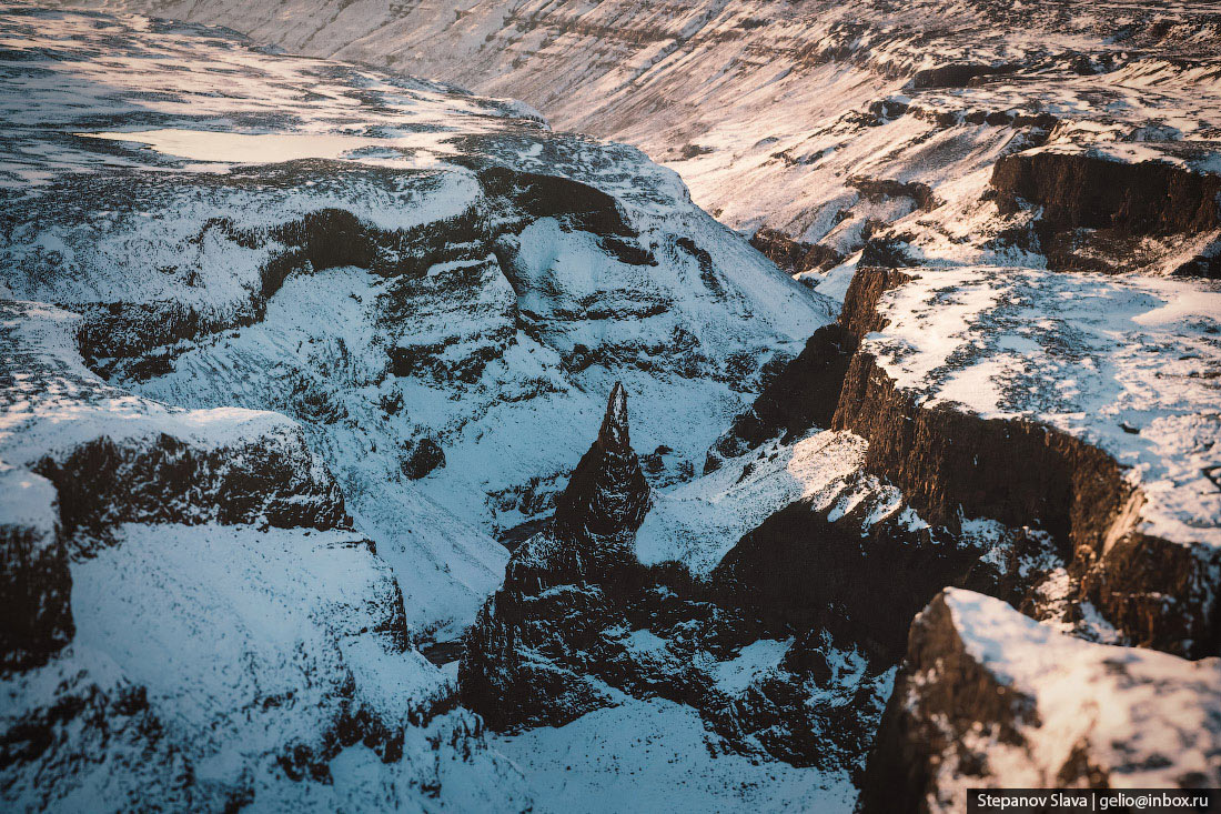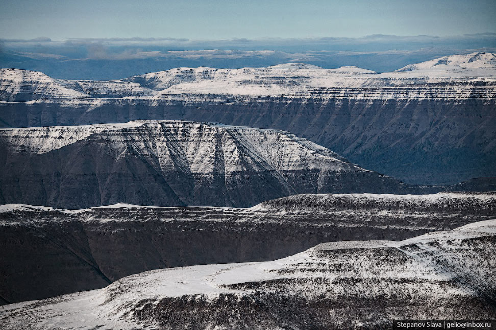 51. Пересечь плато за один раз сложно. Расстояние из конца в конец — около 500 км. На вертолёте на одном запасе топлива не пролететь — нужна специальная машина типа Ми-8МТВ с дополнительными баками.