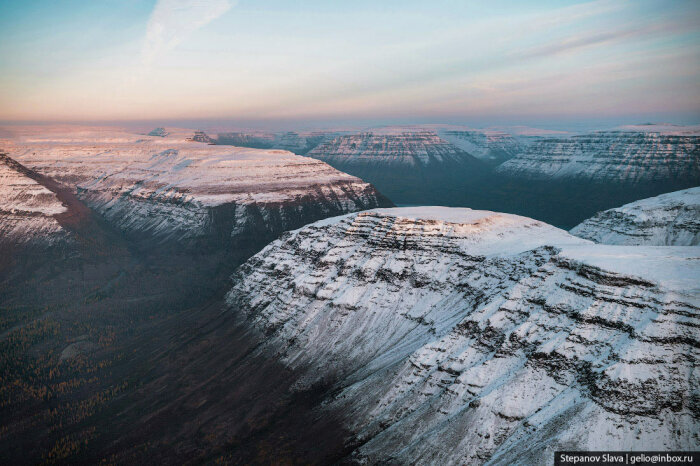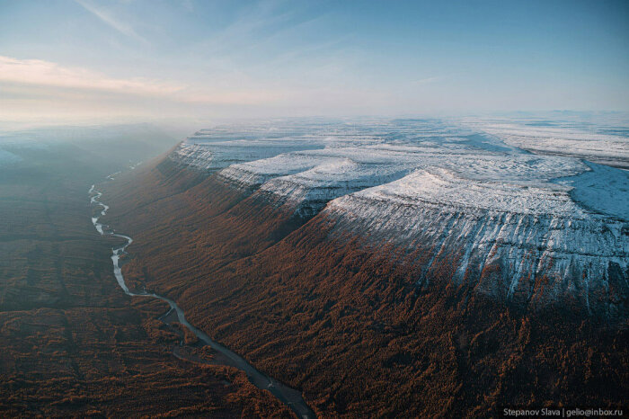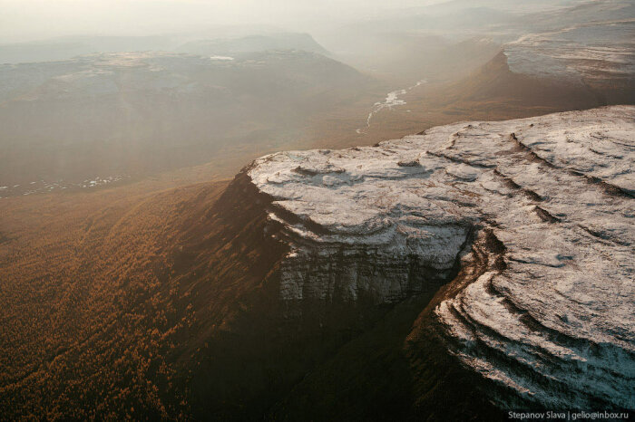1. Плато образовалось после извержения супервулкана 252 млн лет назад, вызвавшего великое пермское вымирание. Лава выходила на поверхность, застывала и образовывала базальтовые породы. Их часто называют сибирскими траппами, а на поверхности можно увидеть слои, похожие на кристаллы с правильной формой. Это второе в мире по величине трапповое плато после Декана в Индии.