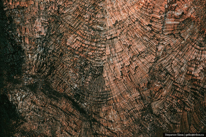 27. Базальт. Так выглядят застывшие потоки лавы через несколько сотен миллионов лет.