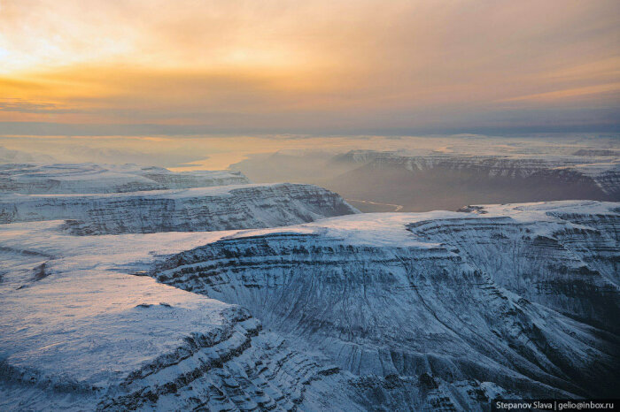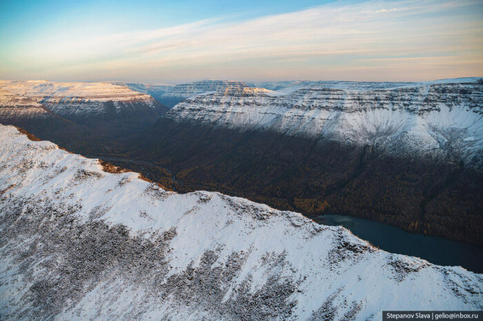 Плато Путорана — это горный массив, который состоит из столовых гор, ущелий, каньонов, рек, озёр и водопадов. Столовыми горы называют потому, что у них плоские вершины. Плато расположено на территории Красноярского края и граничит на севере с полуостровом Таймыр. Территория находится в вечной мерзлоте и считается одним из самых малоизученных и труднодоступных районов России.