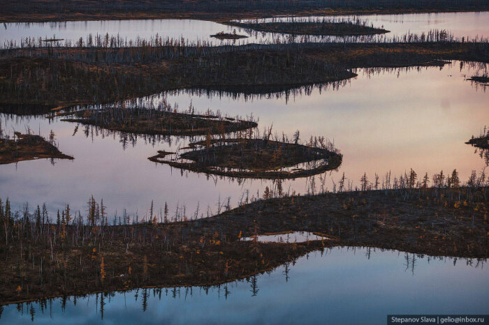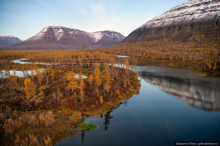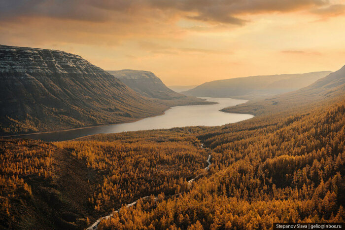36. Озеро Собачье расположено в широкой котловине между западными отрогами плато Путорана.