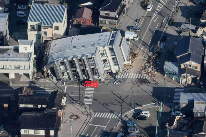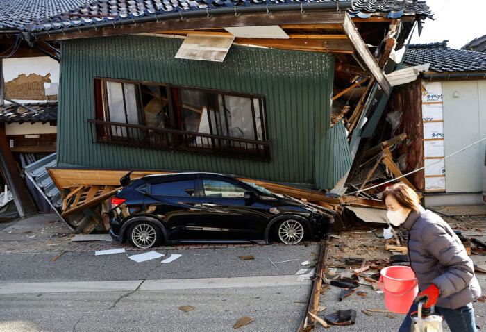 Более 1400 домов частично или полностью разрушены. Без воды остаются 59 тысяч домохозяйств в префектуре Исикава, без света — более 15,5 тысяч. В регионе открыты 357 эвакуационных пунктов, число эвакуированных превышает 28 тысяч. (Фото Hiro Komae):