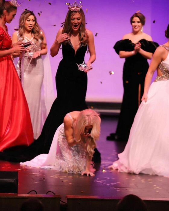 В своем выступлении на конкурсе талантов Марш рассказала, как получила лицензию пилота в 16 лет.