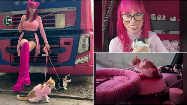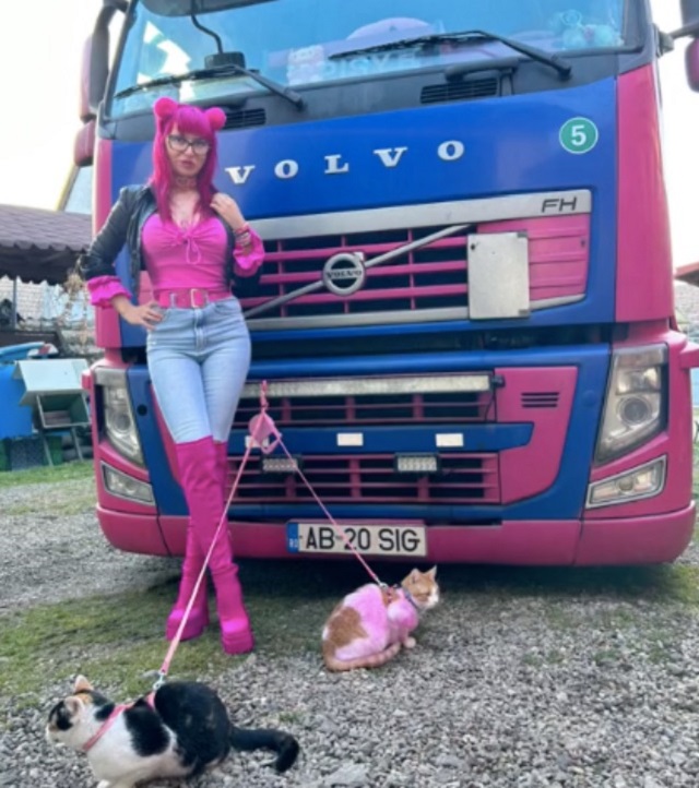 Знакомьтесь, это Джорджета. Ей 35 лет и она самая гламурная дальнобойщица из Румынии! Она превратила свою фуру в настоящий рай для Барби. Также Джорджета ведет соцсети, где показывает свои рабочие будни. Само собой, барышня стала настоящей звездой. А как иначе? Ведь она рассекает по дорогам на своем огромном грузовике вместе с двумя котиками.