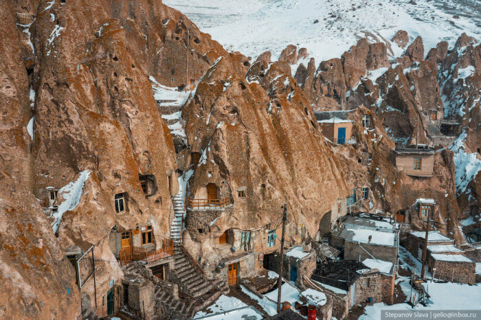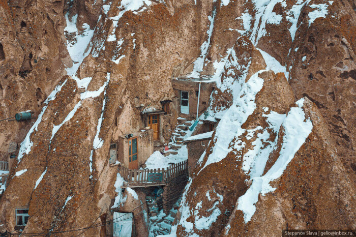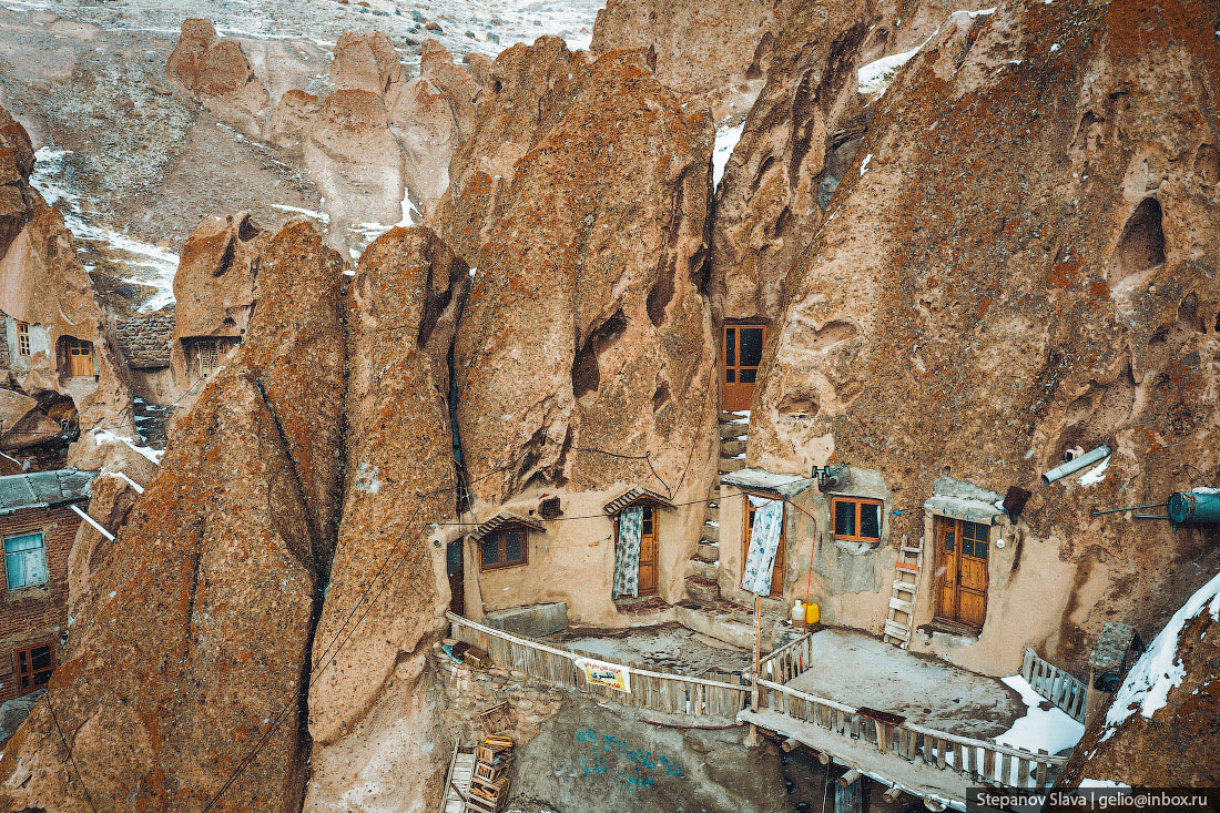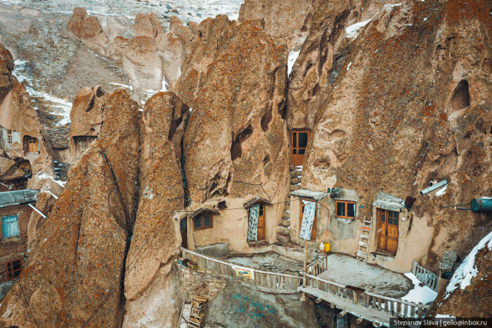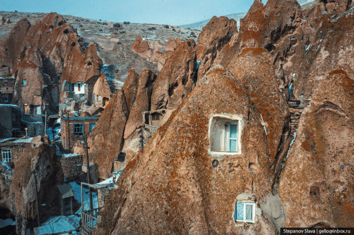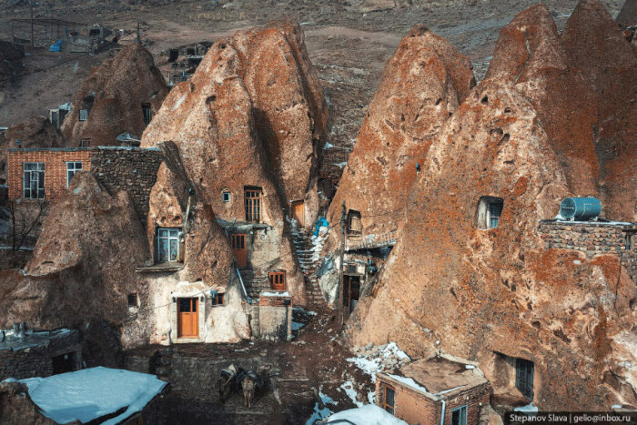 4. Испещрённые скалы Кандована похожи на улей, местные жители называют их «караан». Каждый караан имеет от двух до четырёх этажей, общей высотой около 40 метров. Каждый дом — по сути пещера, выдолбленная в скале, с дверью и окнами.
