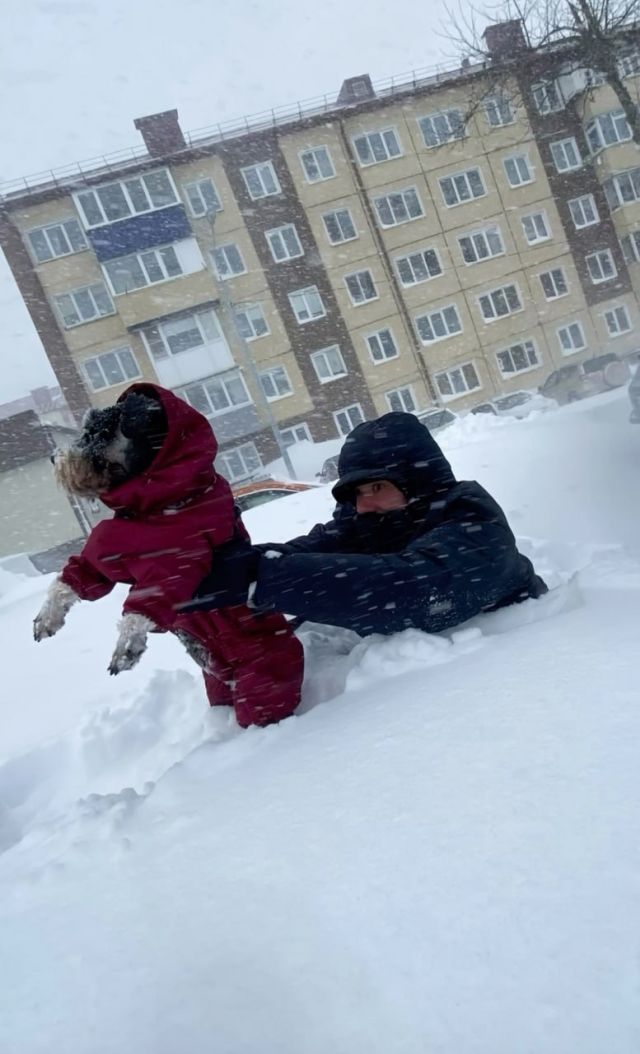 Как вы знаете, погодка на Сахалине, мягко сказать, немного снежная. Порой снег банально не дает выйти из подъезда. Но если на кухне есть запас провизии, то можно и дома посидеть. Однако, что делать, если с вами живет... собака. В таком случае выход на улицу неизбежен, ведь песику неизбежно захочется в туалет. И вот, как выглядит обычная прогулка с собакой в погожий зимний денек, когда вы живете на Сахалине.