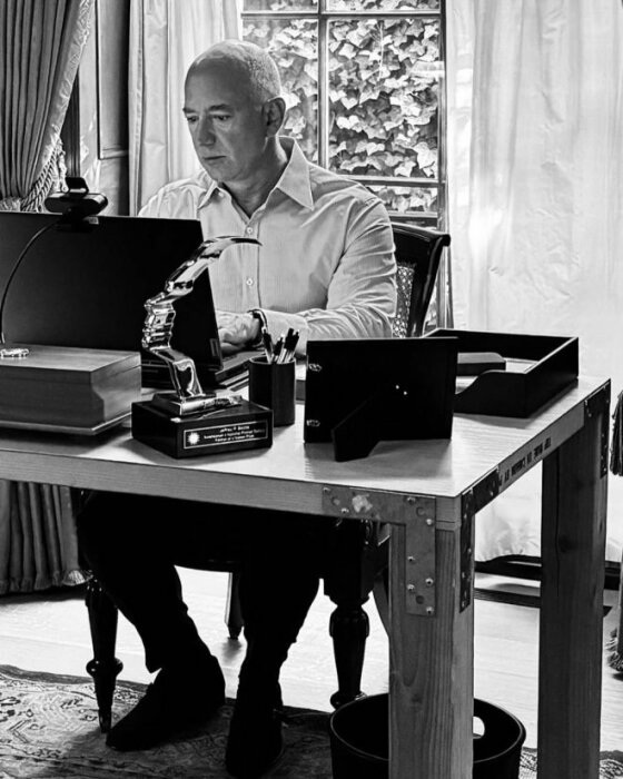 Стол сделан из б/у дверей и ножек, когда у компании средств не хватало даже на мебель. На январь 2024 года состояние Джеффа Безоса оценивается – более чем в 180 млрд долларов.