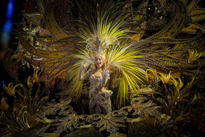 Кандидатка на звание королевы карнавала выступает во время гала-концерта по выборам королевы в Санта-Крус-де-Тенерифе, Испания. (Фото Desiree Martin):