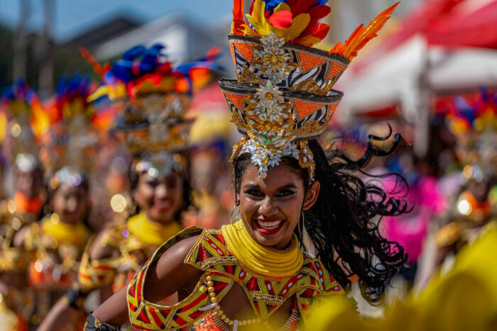 Парад Гран-Парада на карнавале в Барранкилье в Колумбии. Один из самых важных фольклорных праздников Колумбии и один из крупнейших карнавалов в мире. Традиции карнавала восходят к 19 веку. За четыре дня до Великого поста Барранкилья наряжается для приема национальных и иностранных туристов. (Фото Charlie Cordero):