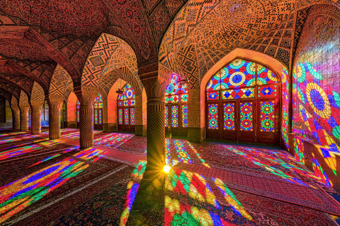 Свет проходит сквозь витражи окна и сияет на узорах ковров и выложенных плиткой лилиях. (Фото Majid Hojati):