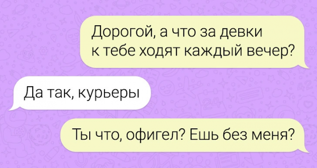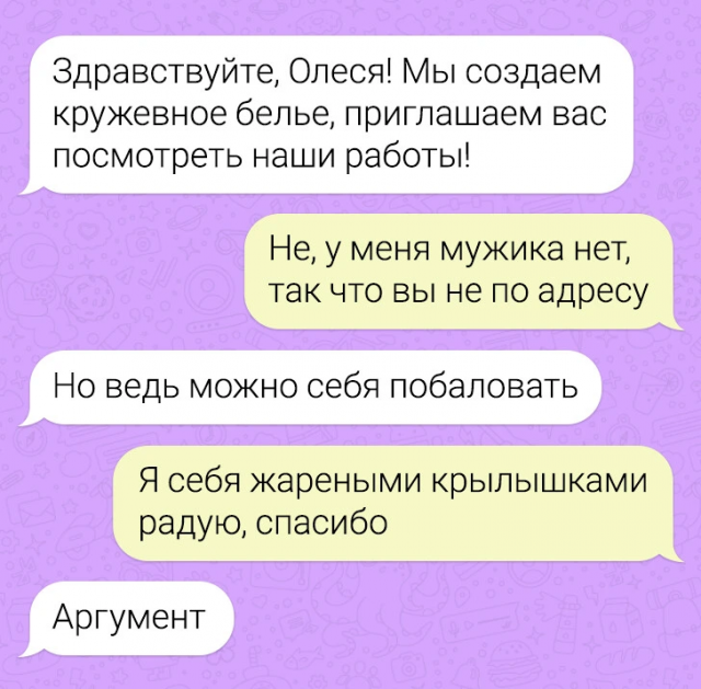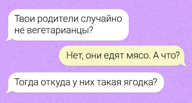Собрание веселых переписок 13/03/2024 22:40 Вот и новая подборка забавных переписок. Пост явно в представлении не нуждается. Поэтому не будем терять драгоценные минуты перерыва! Всех приглашаем в подборку и желаем веселого просмотра. Главная / Картинки +3 Admin 0 211