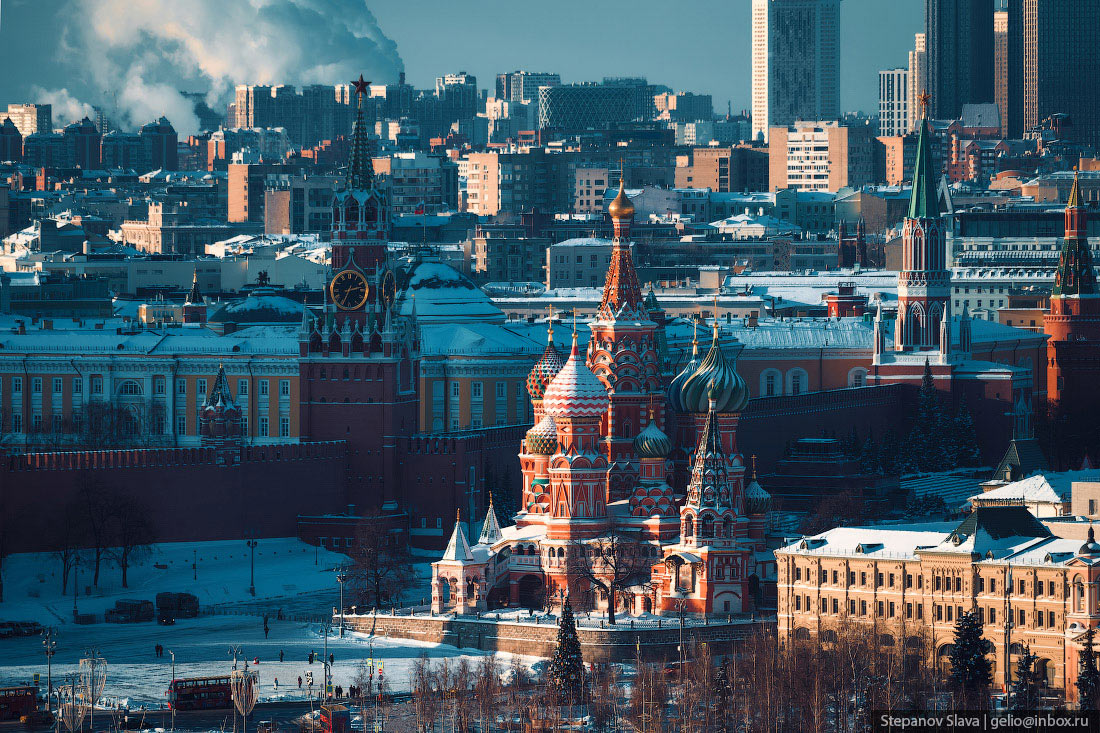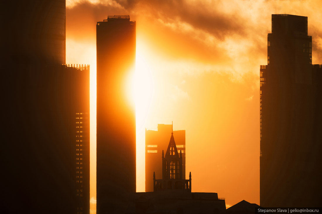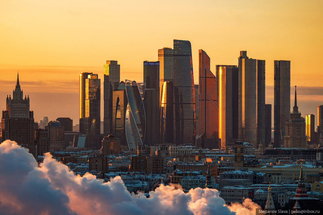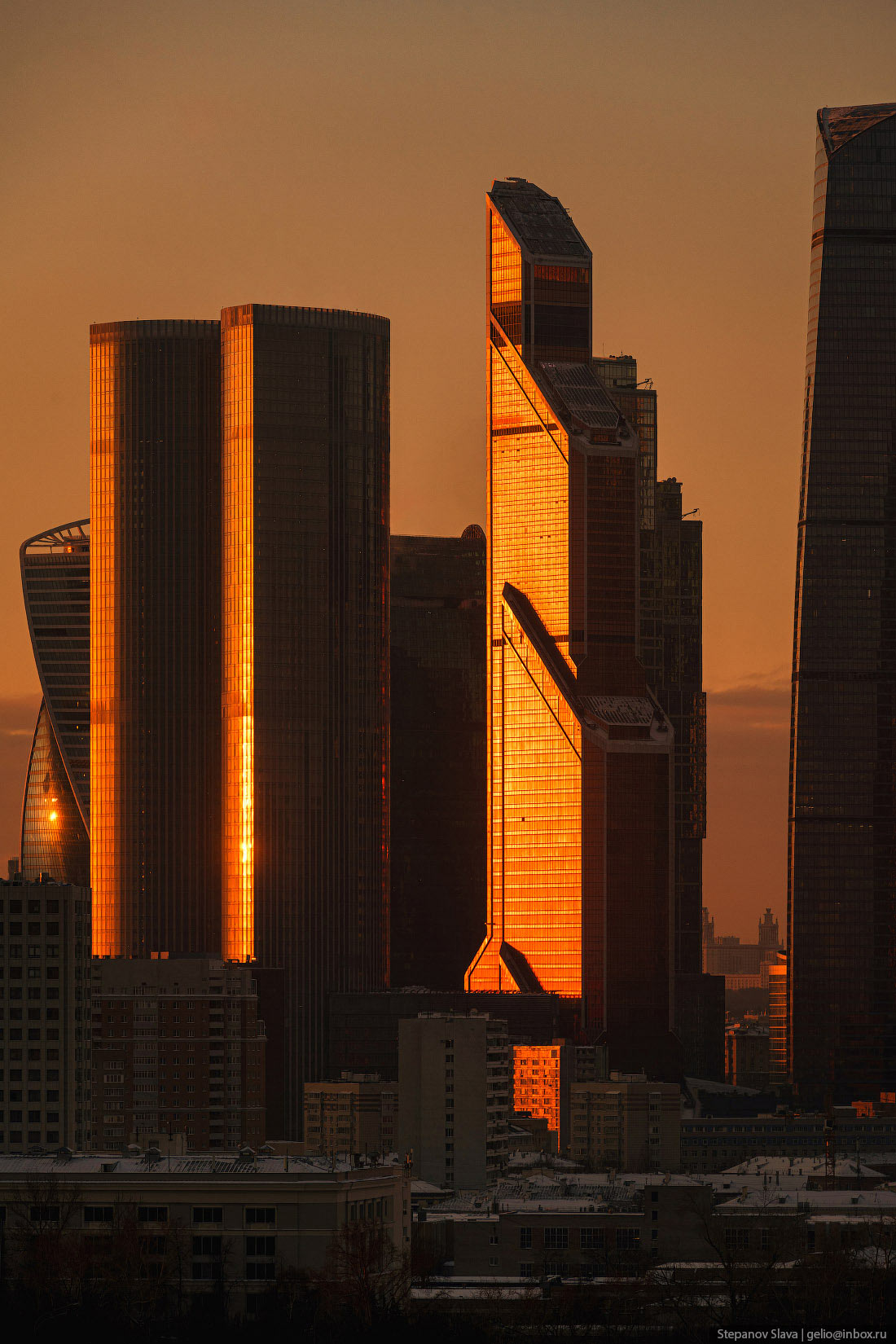 5. Контраст архитектуры — башни Москвы-Сити нависают над исторической частью города.