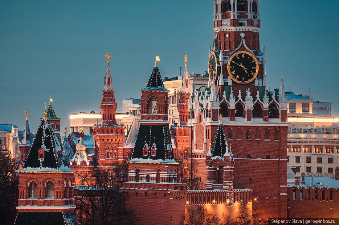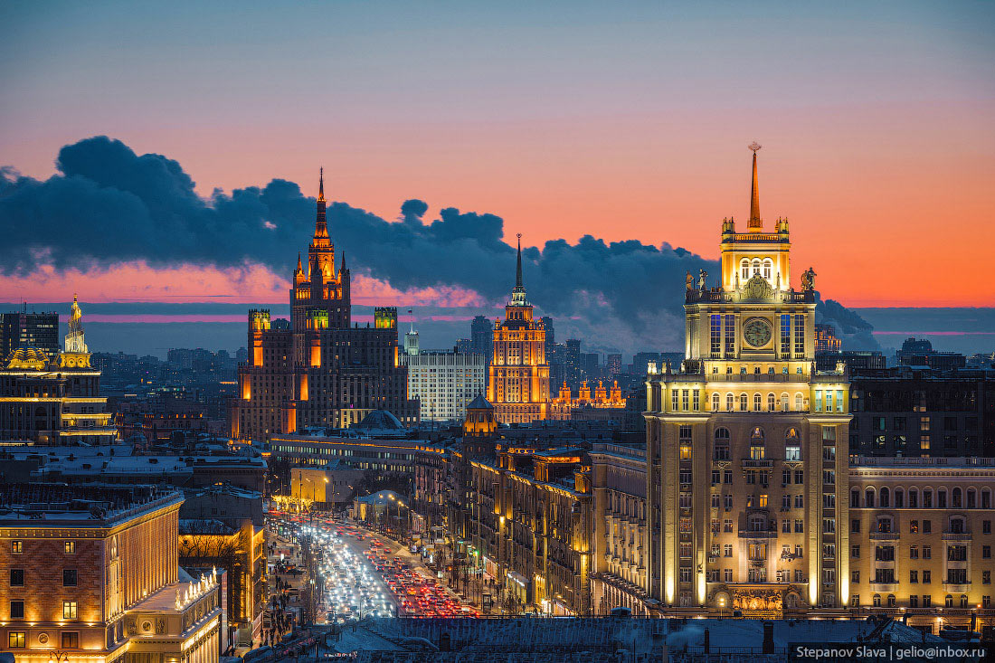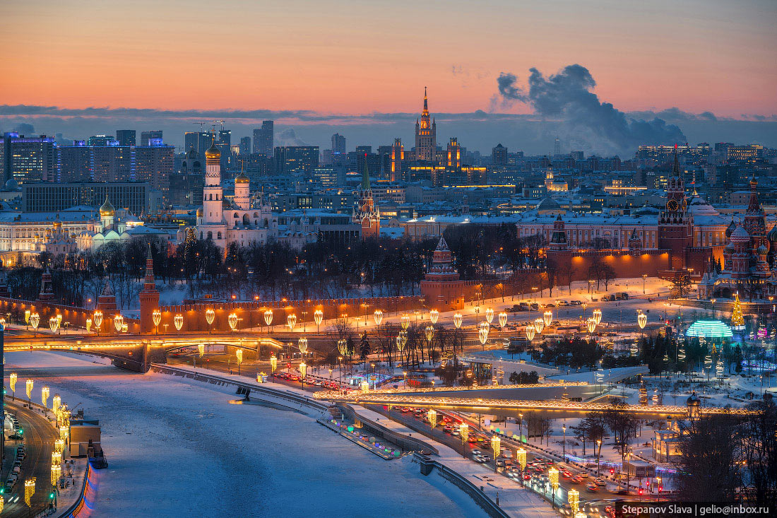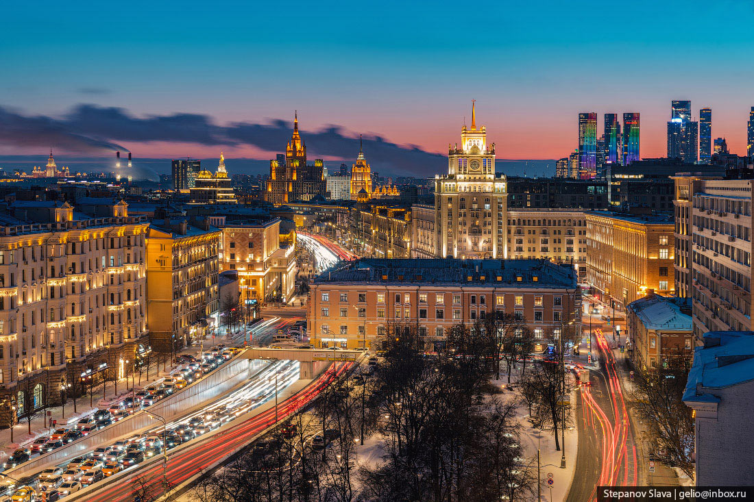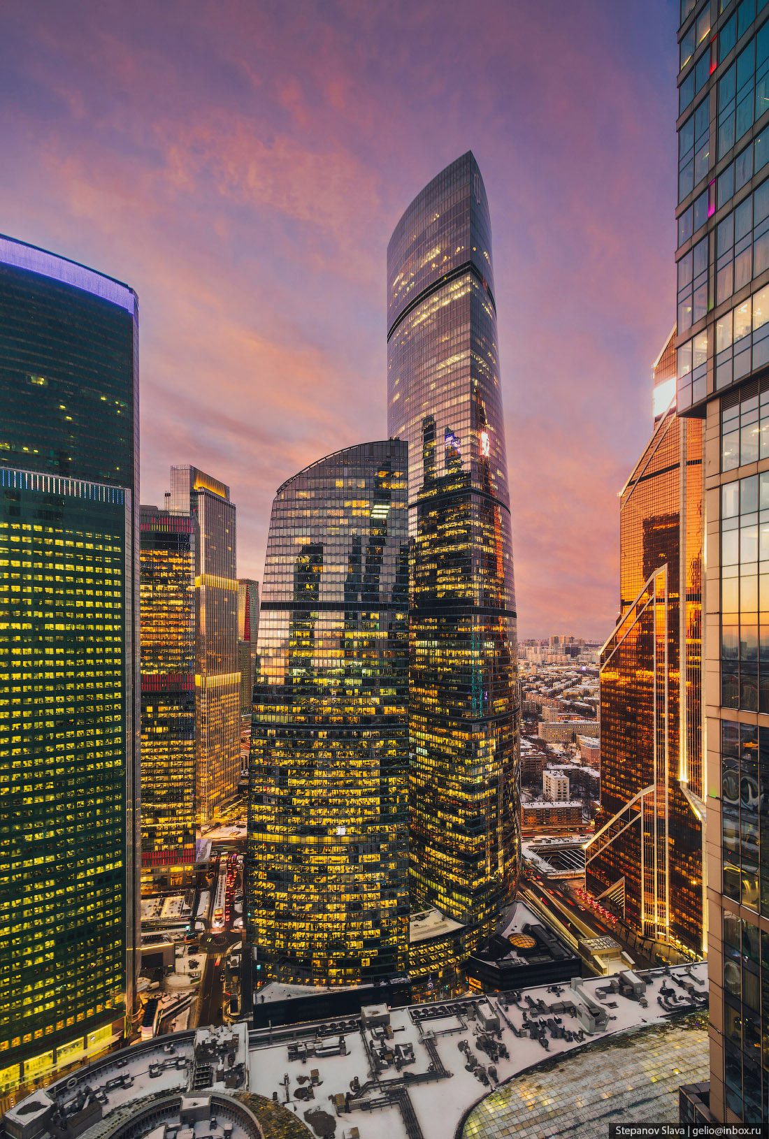 5. Контраст архитектуры — башни Москвы-Сити нависают над исторической частью города.