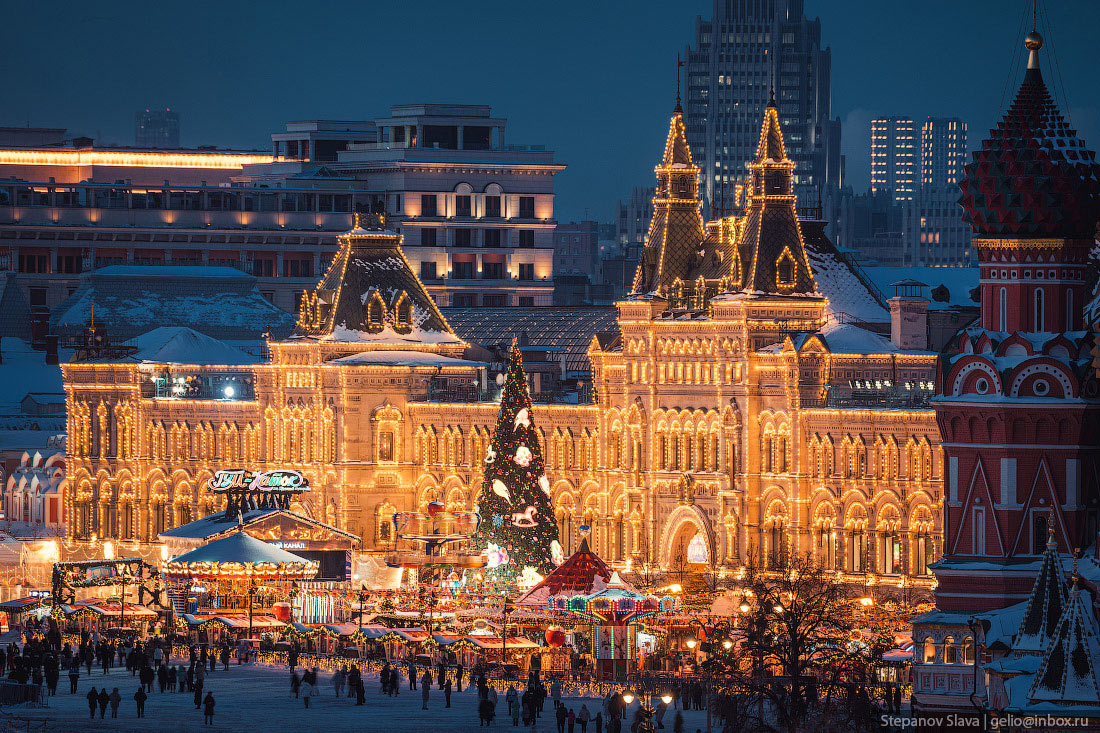 6. Новогодняя ГУМ-ярмарка на Красной площади. Ярмарку устраивают ежегодно. А рядом с ней с 2006 года заливают каток — один из самых больших в Европе.