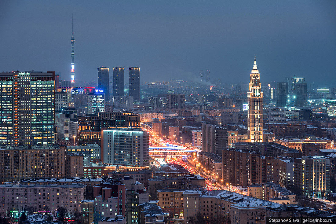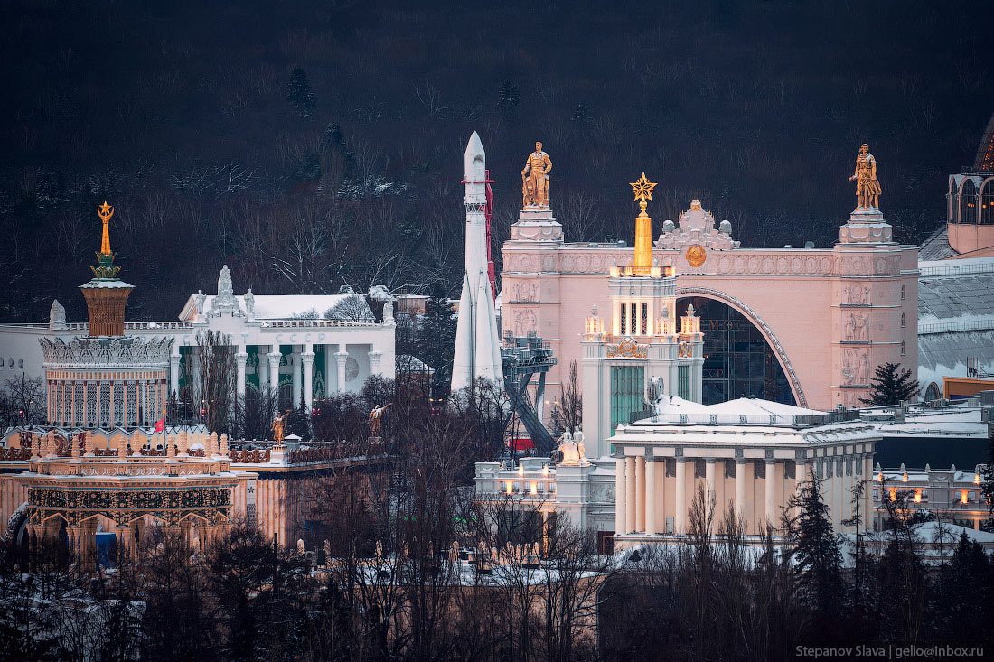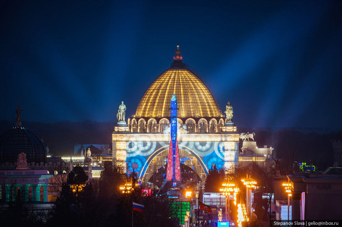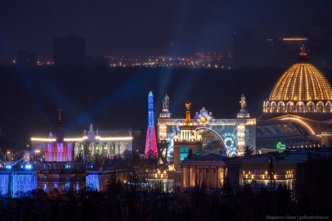 19. Свет прожекторов на выставке «Россия» виден издалека — даже из районов рядом с МКАД в северо-восточной части Москвы.