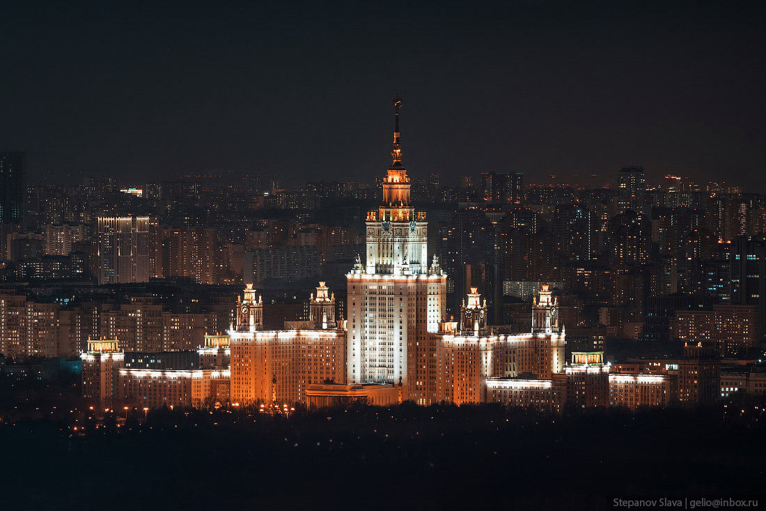 26. МГУ — Московский государственный университет. Главное здание МГУ на Воробьёвых горах — это самая высокая из сталинских высоток. На протяжении более 50 лет это было самое высокое здание Москвы. Со шпилем высота здания достигает 235 метров.