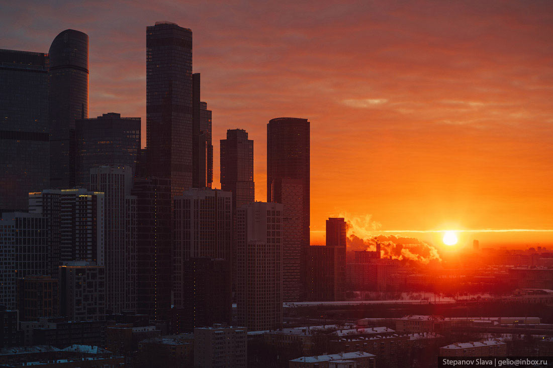 2. Начиная с декабря солнце в Москве заходит примерно в 16.00 и через полчаса практически наступает ночь. А если учесть, что небо большую часть дней затянуто облаками — кажется, что ночь начинается ещё раньше.