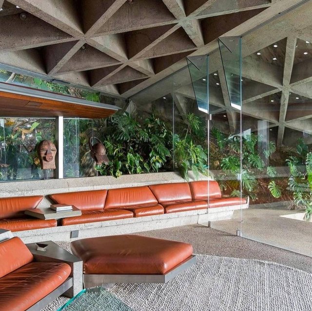 Перед нами кадры из элитной резиденция Шеатса-Голдштейна. Дом был спроектирован и построен между 1961 и 1963 годами американским архитектором Джоном Лотнером в районе Беверли Крест в Лос-Анджелесе. Он очень популярен в СМИ и культуре, благодаря тому, что тут снимались «Большой Лебовски», «Ангелы Чарли», «Бандиты».