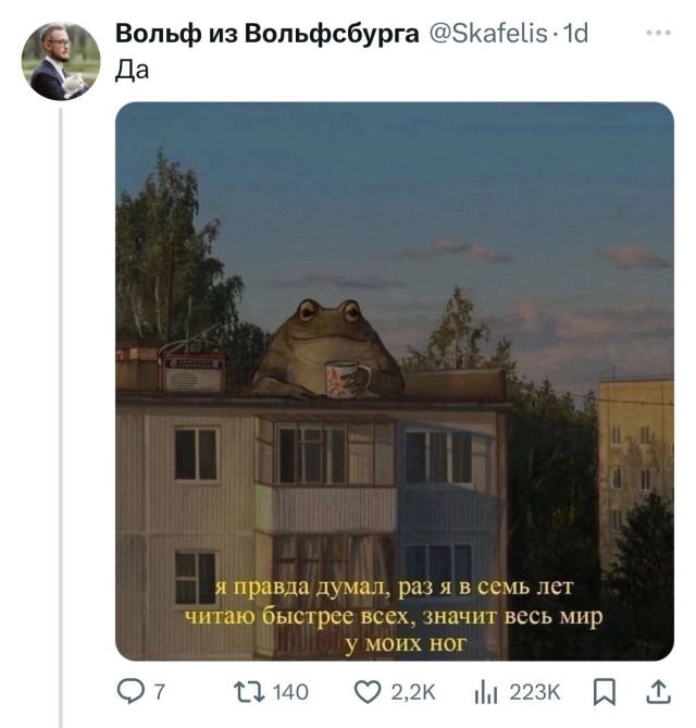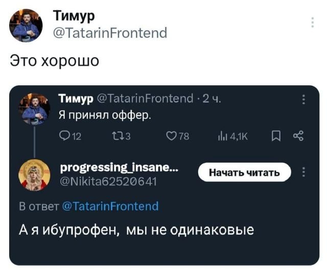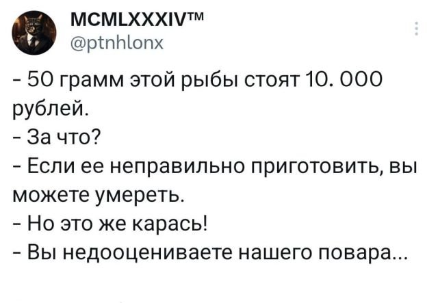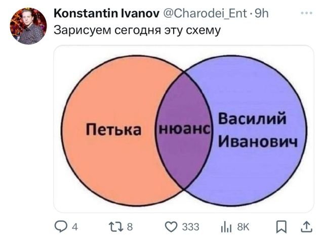 Подборка забавных твитов обо всем 18/03/2024 20:00 А вот и новая подборка забавных твитов. Отличная оказия чтобы поднять себе настроение перед вечером понедельника. Так что не будем тратить драгоценных минут перерыва. Всех милости просим и веселого просмотра. Главная / Картинки 0 Admin 0 167