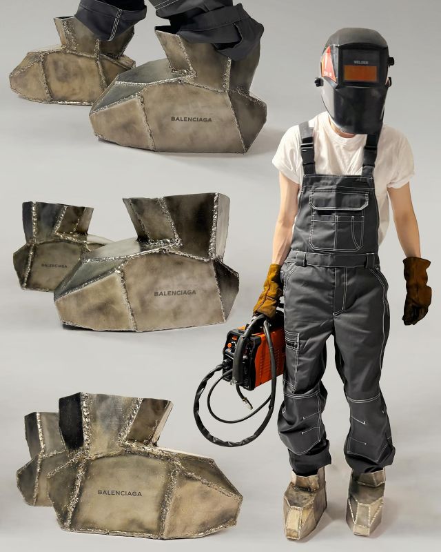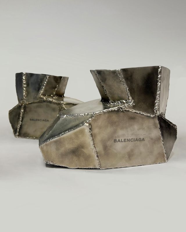Balenciaga продолжают хулиганить и провоцировать модный мир своими новыми и безумными творениями. И стоит отметить их трудолюбие, ибо ребята "штампуют" хиты один за другим. То браслет-скотч за 300 тысяч рублей, то стильные ботиночки для "заводчан". Ходить в них практически нереально и возможно даже опасно для здоровья. Но зато как блестят!