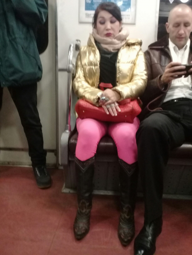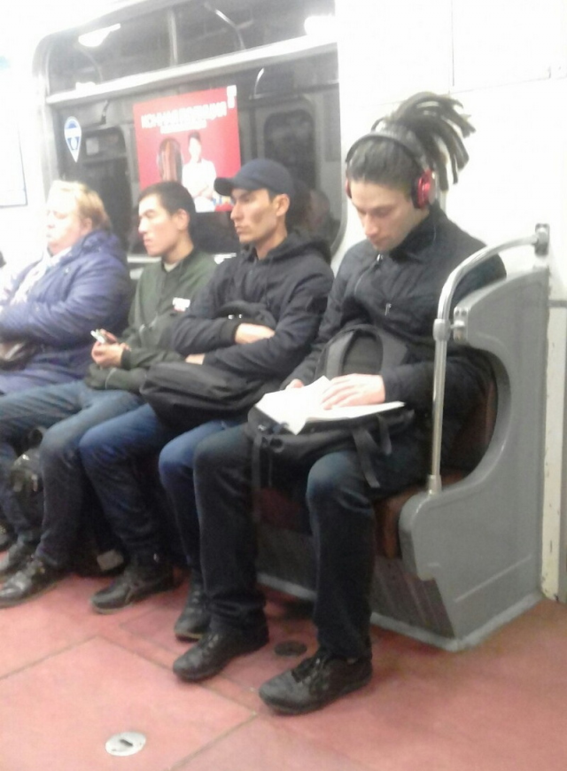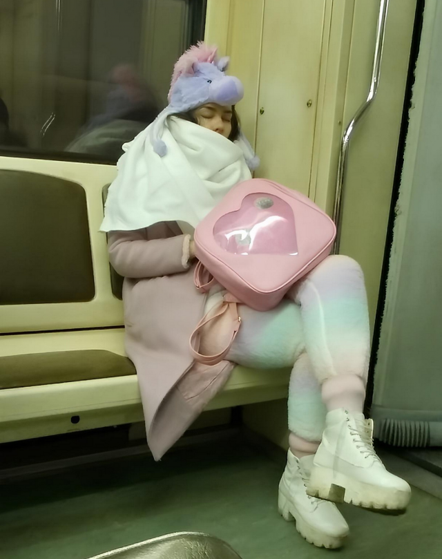 Предлагаем всем спуститься в метро и поглядеть на ярких и необычных ребят, на которых невозможно не обратить внимания. Кого среди них только нет! Там есть панки и любители гламура, элегантные стиляги и чудаки, уставшие рок-рыцари, в общем, речь про людей, которые явно выделяются на фоне серых курток и черных шапок. Есть даже песик! Давайте посмотрим на этих пассажиров, ожидающих своей остановки.