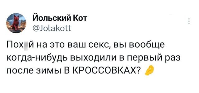 Подборка забавных твитов обо всем 20/03/2024 18:00 Вы слышите? Твиты, твиты, твитушки прилетели! Так что давайте не терять момент, пока они не улетели. Заходим, смотрим, расслабляемся и не переживаем. Всех милости просим и веселого просмотра. Главная / Картинки +1 Admin 0 136