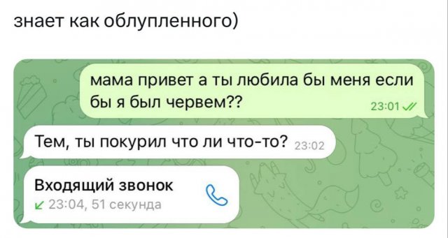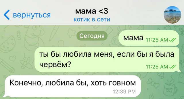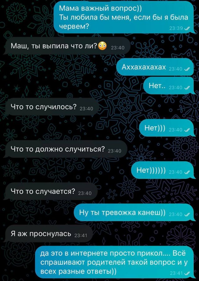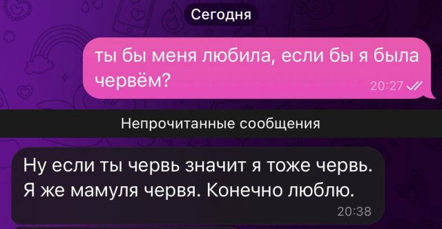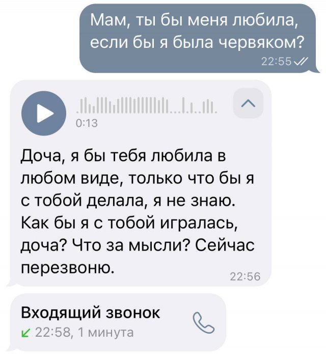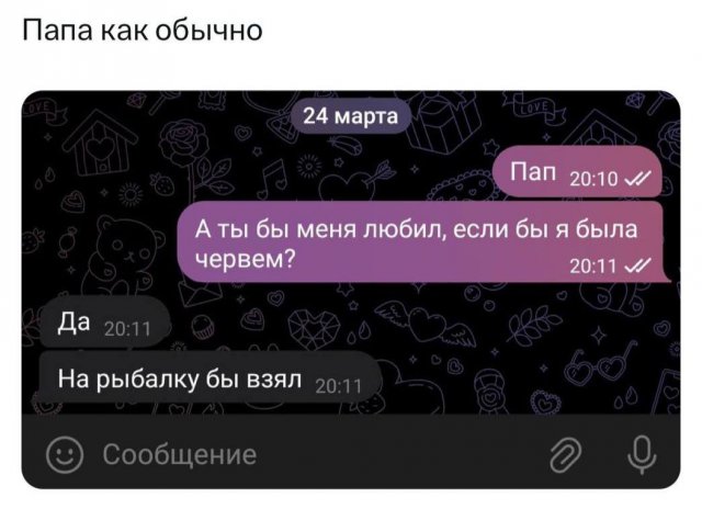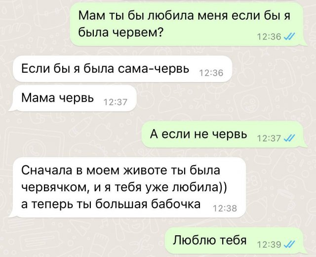 "Любила бы меня, если бы я был червяком": суть семьи в новом опросе 27/03/2024 14:00 Молодежь решила устроить необычный опрос своим родителям. Люди задали маме и папе один вопрос: "Любили ли вы меня, если бы я был червяком?". И вот что услышали. Главная / Картинки +4 Admin 0 218