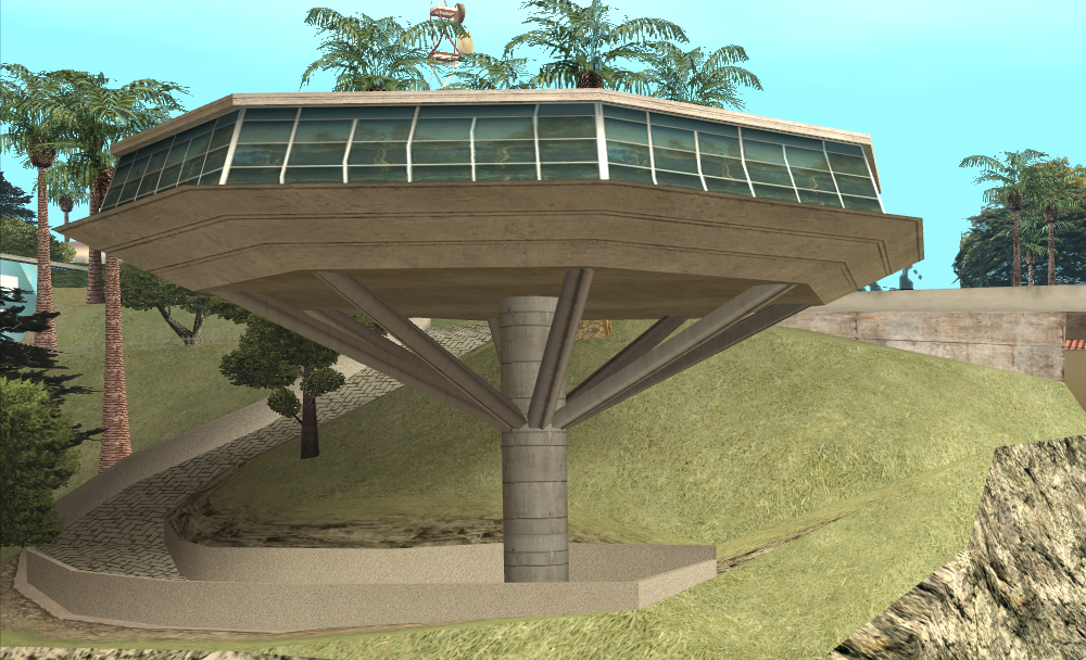6. Хемосфера. Данное название не является официальным. Так прозвали восьмиугольный дом, который есть как в игре, так и в реальности. Настоящее здание, спроектированное аж в 1960 году, когда-то назвали «наиболее современным домом всего мира», поскольку оно решало проблему строительства на холмах и имело восьмиугольную форму. Ни в игре, ни в реальности попасть в здание нельзя.