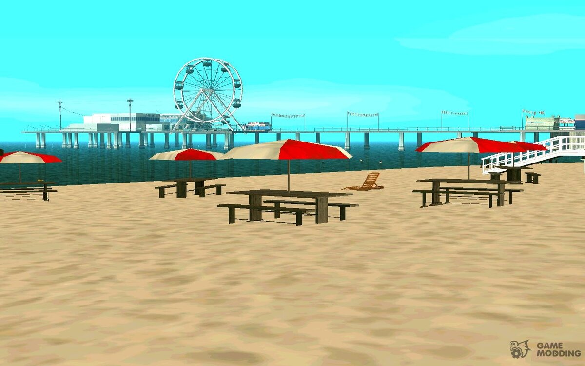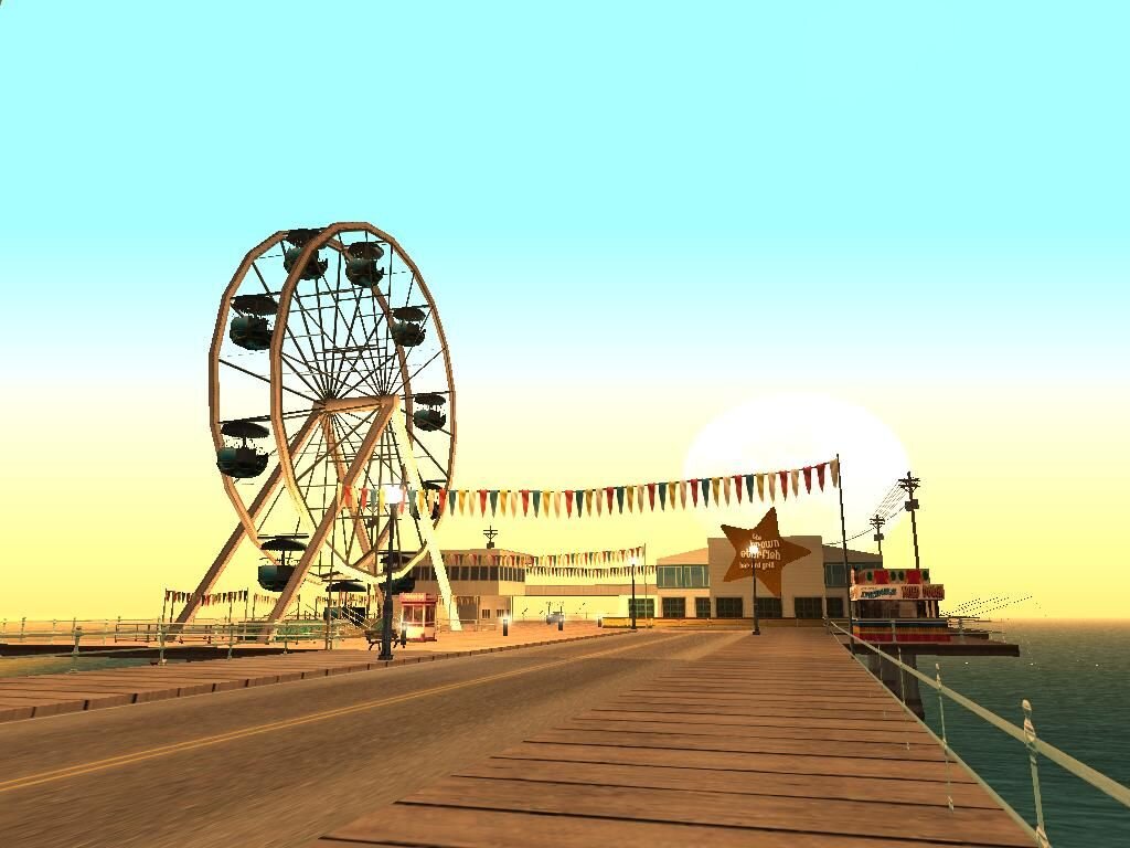 3. Пляж Санта Моника. Одно из знаковых мест в игре. И одно из популярнейших. В реальности есть как набережная, так и сам пляж. Выглядит не один в один, но похоже. Более детально это место проработали в игре GTA V.