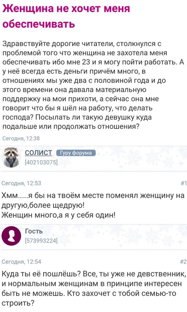 Ну что ж... кринжанем немножечко! Да, вновь на нас обрушились безумные и смешные истории от девушек с женских форумов. Отключайте логику, оставьте надежду у входа и доставайте шапочки из фольги. Будет тяжко!