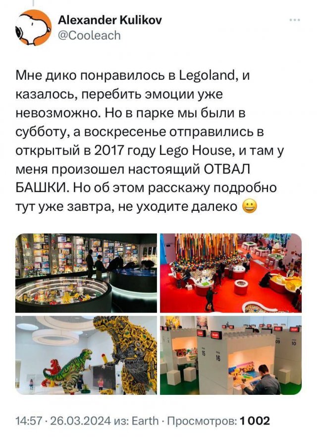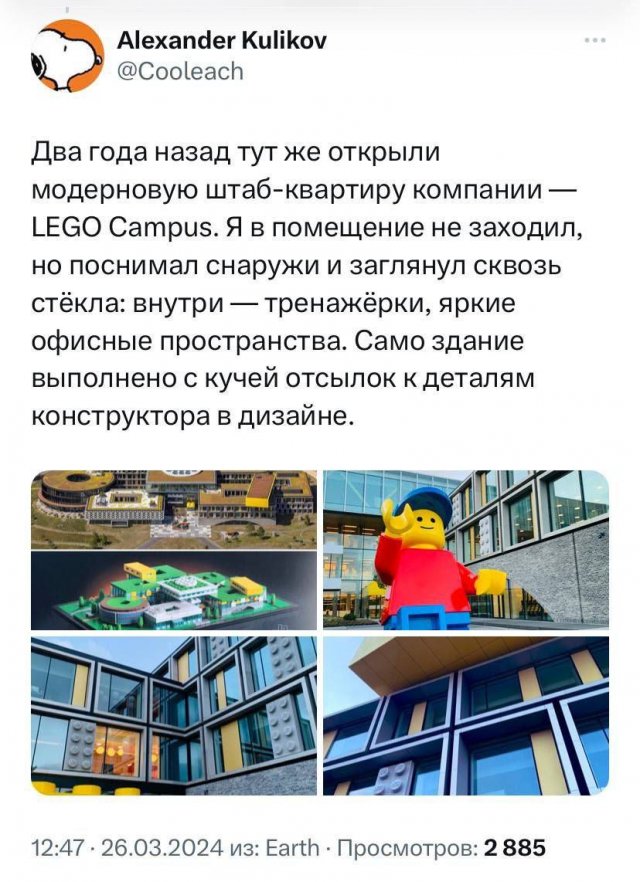 Как выглядит штаб-квартира Lego 29/03/2024 18:00 В детстве мы все обожали собирать наборы Lego. Да что там, некоторые даже сейчас мечтают о них. А как выглядит штаб-квартира "Леголенда"? Об этом рассказал подин из посетителей. Главная / Картинки +1 Admin 0 100