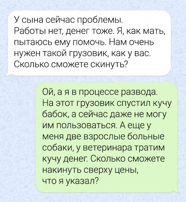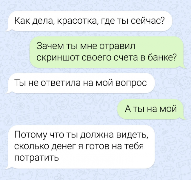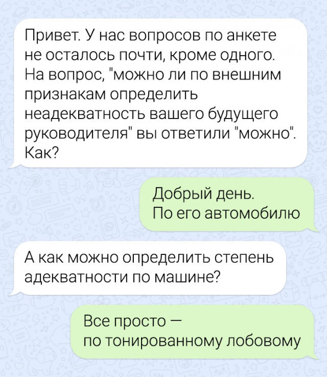 Подборка забавных переписок 01/04/2024 22:00 А вот и новые переписки. Хороший вариант для того, чтобы весело и бодро начать понедельник. Так что всех милости просим в пост и желаем веселого просмотра. Главная / Картинки 0 Admin 0 176