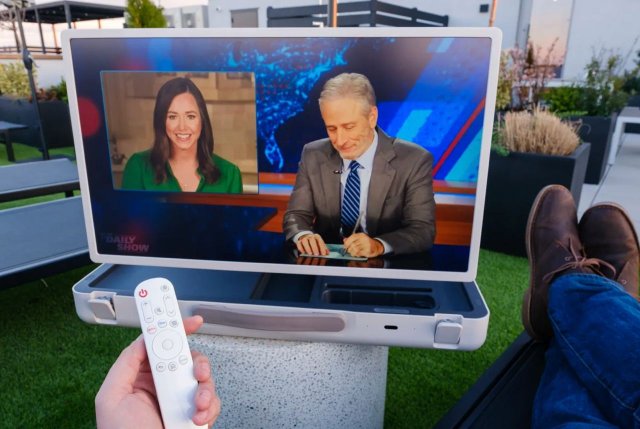 Да, это телевизор-портфель с 27-дюймовым экраном, который еще и сенсорный. Там есть звуковая система и подключение HDMI.