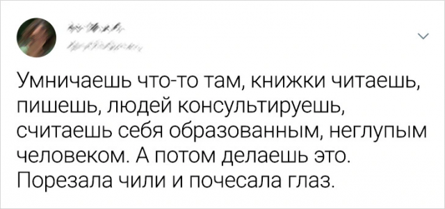 Подборка забавных твитов про неловкие ситуации 02/04/2024 19:00 Все мы порой попадаем в неловкие ситуации. Да, досадно. Однако, любой фейл имеет свойство превращаться в забавную историю. Главное не переживать и искать во всем позитив. Собственно, так и делают авторы этих забавных твитов. Главная / Картинки 0 Admin 0 136