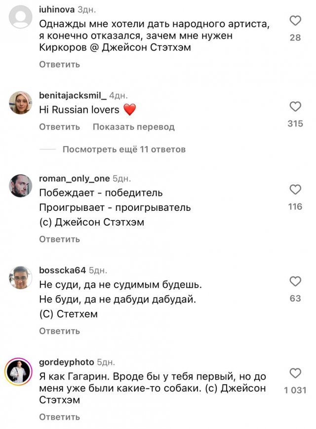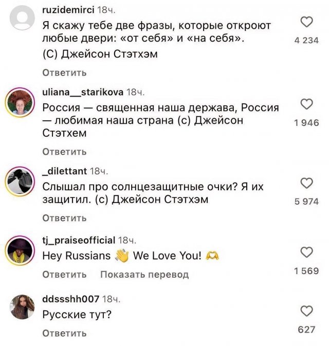 Если вы не участвовали в русской народной забаве "напиши Джейсону Стэтхэму", то нужно срочно это сделать. Любую публикацию в соцсетях актера комментируют наши соотечественники. И выглядит это смешно,