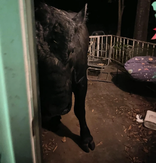«Визит какого-то жуткого ночного существа. На самом деле, это корова»