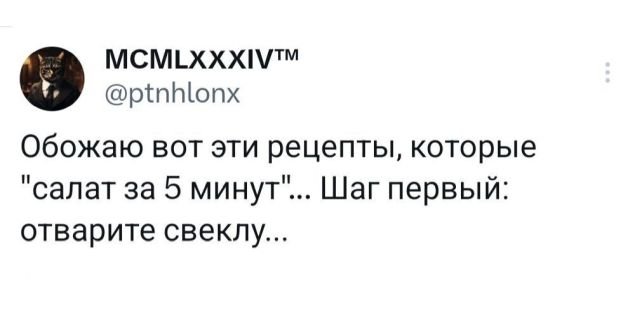 Коллекция смешных твитов на разные темы 03/04/2024 21:40 Вот и новая подборка забавных твитов. Отличная оказия, чтобы немного отвлечься, расслабиться и поднять себе настроение. Так что всех милости просим в пост и желаем приятного просмотра. Главная / Картинки +3 Admin 0 121