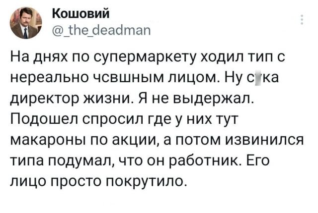 Подборка забавных твитов обо всем 05/04/2024 12:30 Вот и новая подборка забавных твитов. А это значит, что можно смело устроить себе маленький перерыв для поднятия настроения. Так что всех милости просим в пост и веселого просмотра. Главная / Картинки +1 Admin 0 239