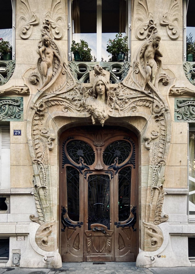 Эти красивые двери находятся в Париже, Франция. Это здание Лавиротта под номером 29. Очень яркое проявление архитектуры в стиле модерн.