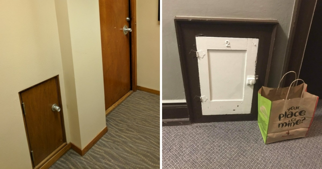 Маленькие крошечные двери. Их часто можно встретить в старых домах. Это дверь для доставки молока. Молочнику было необходимо просто оставить продукт внутри, не беспокоя хозяев. Другая сторона традиционно будет кухней.