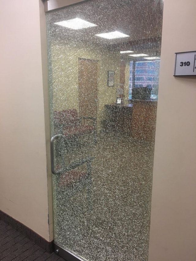 Интересный дизайн двери, имитирующий лопнувшее стекло