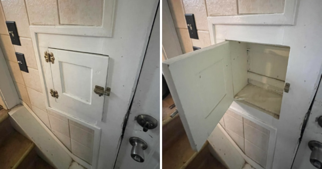 Дверь сфотографировали в старом доме 1920-х годов постройки. Пользователь предположил, что это одна из вариаций дверей для доставки молока. Только она находится не внизу, как это обычно должно быть, а по центру.