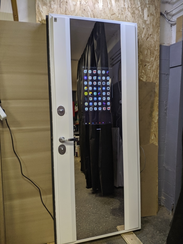 Входная дверь с сенсорным смарт-зеркалом. Возможно, для открытия двери нужно будет посмотреть рекламный ролик!
