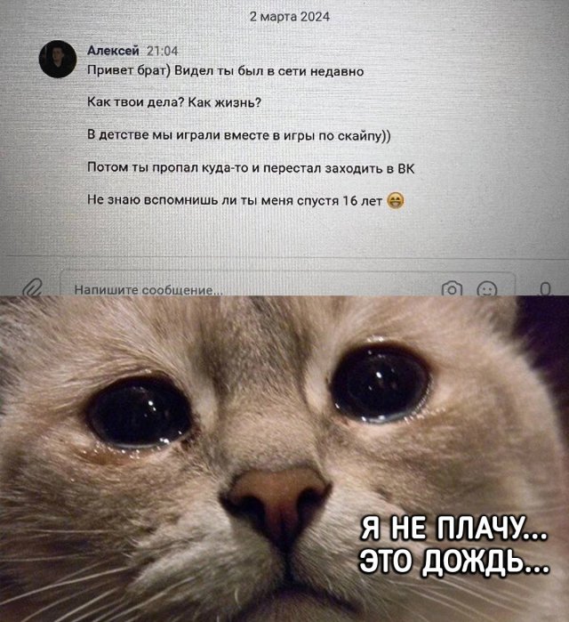 Самая грустная история 11/04/2024 12:00 Вспомните, у вас ведь наверняка был друг по переписке, с которым вы много общались в прошлом. Бывает же такое, что зайдете в старый мессенджер и там всплывают древние контакты. И как приятно о них вспомнить. Главная / Картинки 0 Admin 0 337